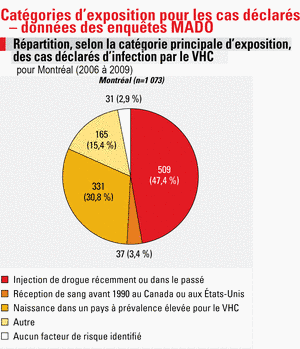 Pour Montréal, un cas sur deux est attribué à l’injection de drogues (récemment ou dans le passé).